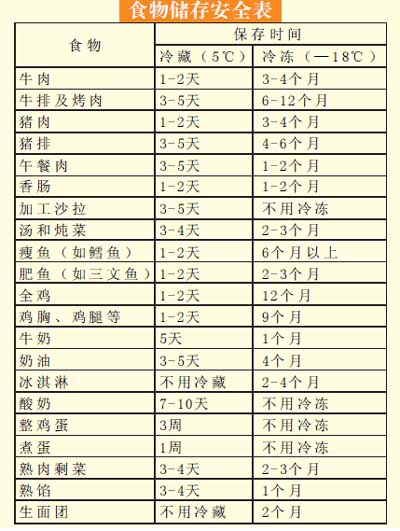 對不同食物的儲存及冷凍時間,安德利冷柜推薦“食物儲存安全表”,告訴大家食品到底能新鮮多久。