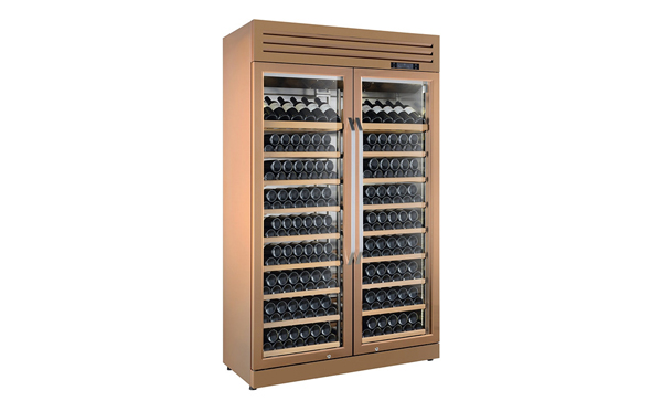 2、全玻璃門,無縫不銹鋼框、帶鎖、二層玻璃:雙門單溫玫瑰金