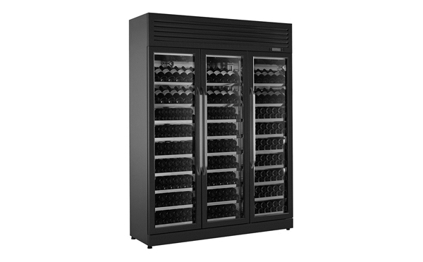 2、全玻璃門,無縫不銹鋼框、帶鎖、二層玻璃:三開門黑太金